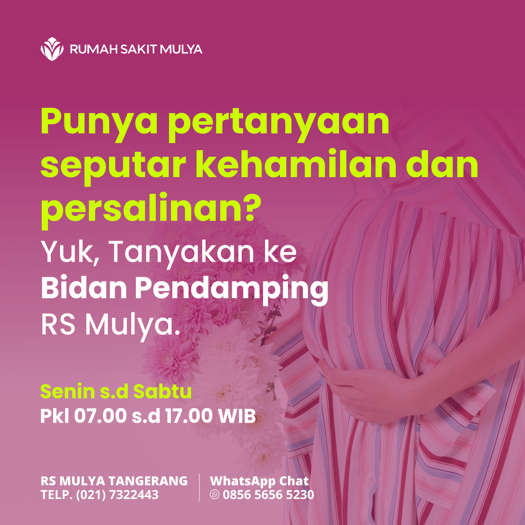 Tersedia paket persalinan dengan Metode ERACS di Rumah Sakit Mulya Tangerang. Gratis biaya PCR dan Antigen untuk pasien dan penunggu pasien.